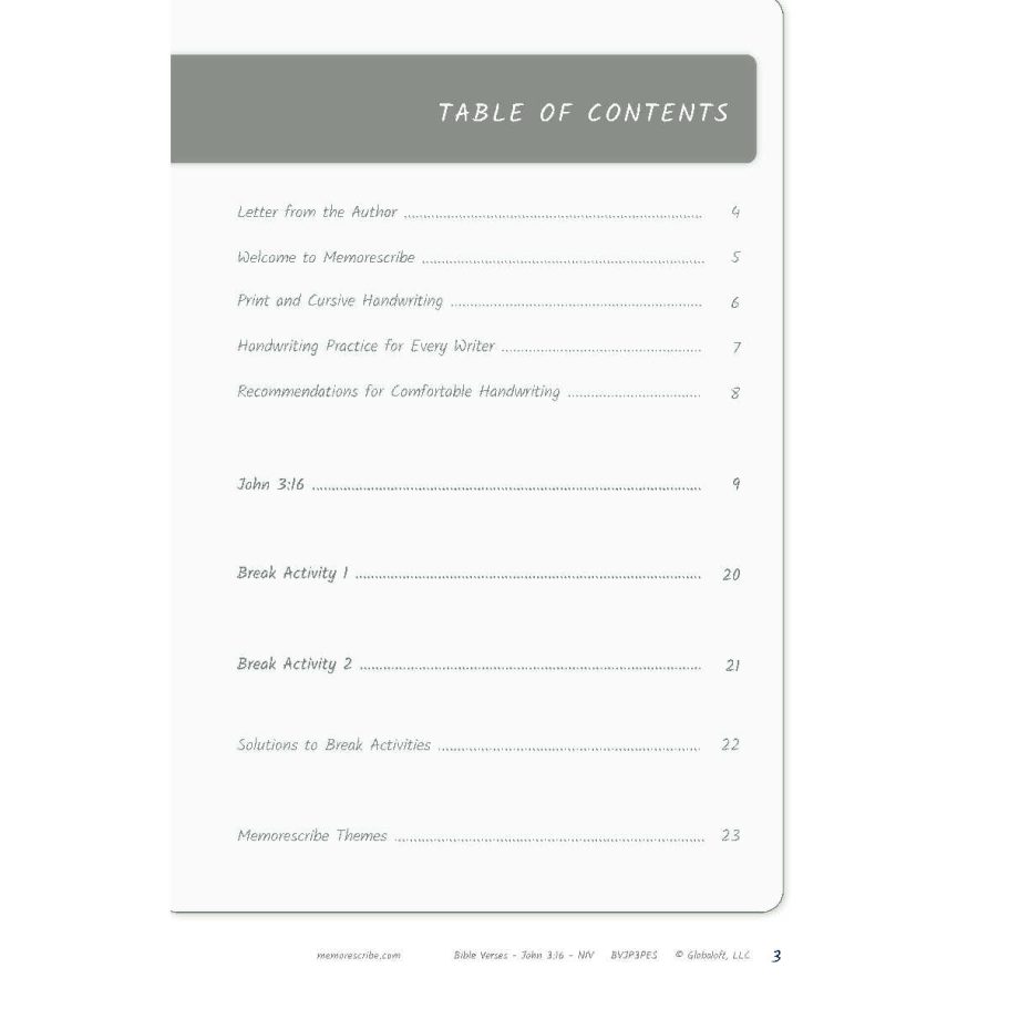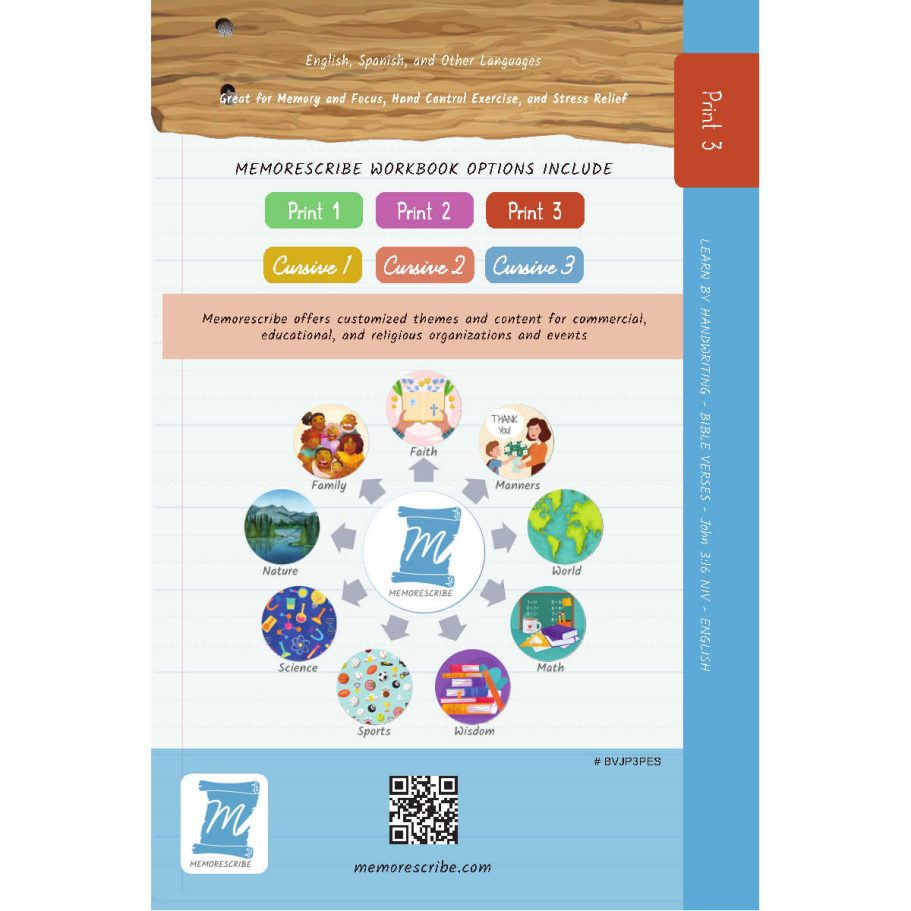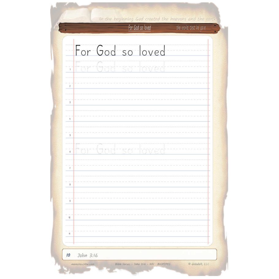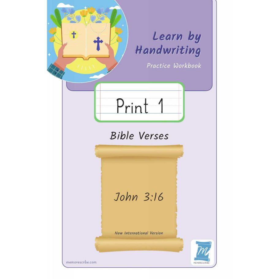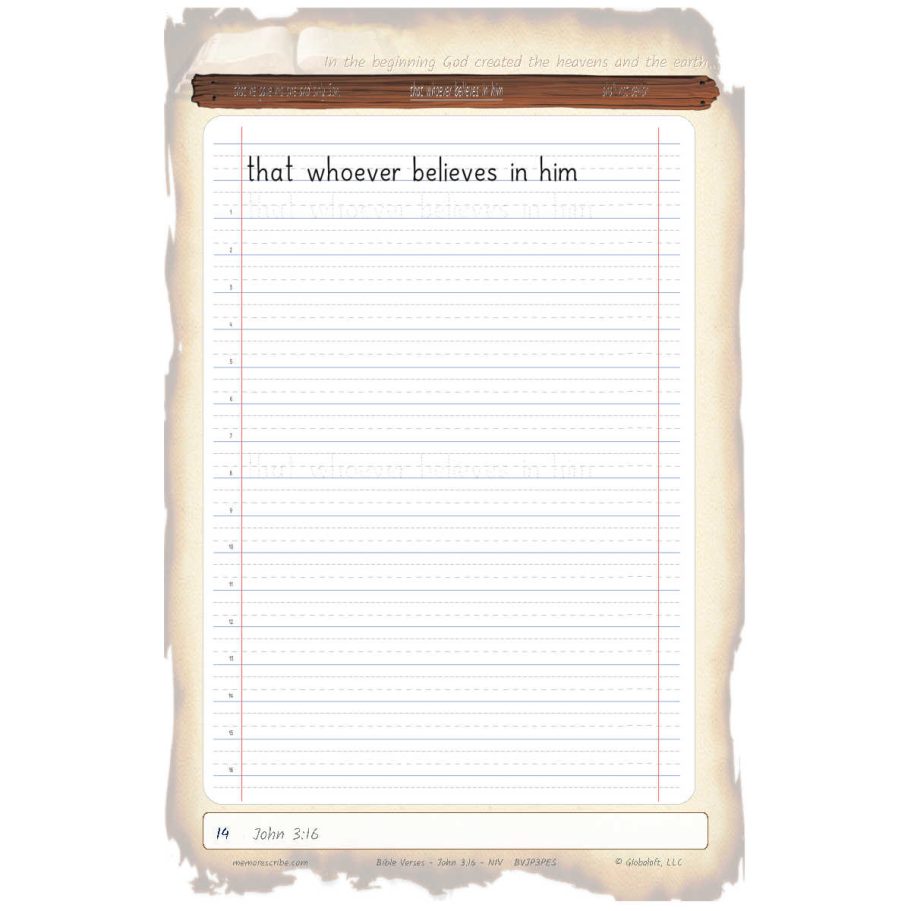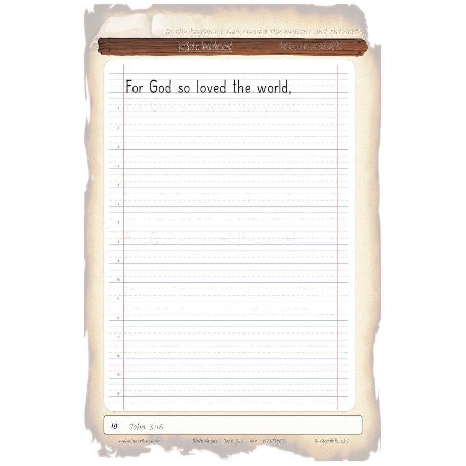 Writers will enjoy practicing and developing their personal, unique handwriting style with easy-to-follow exercises while they learn and review the Bible Verse John 3:16 (NIV).