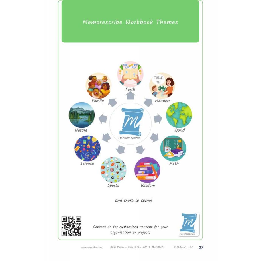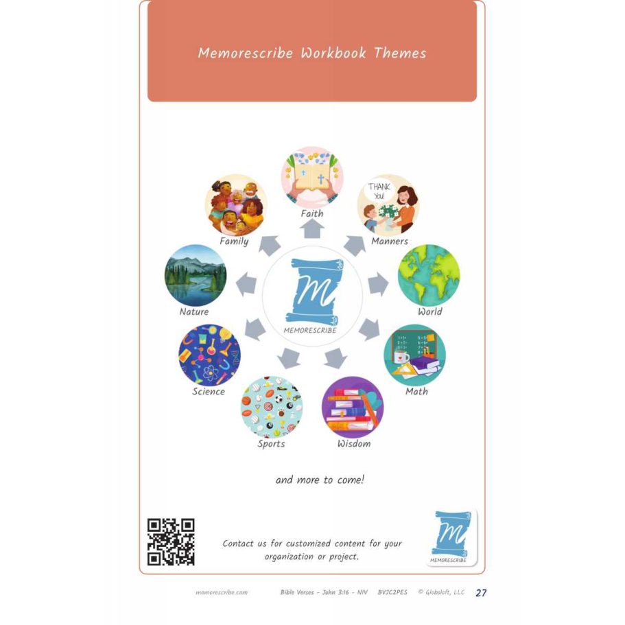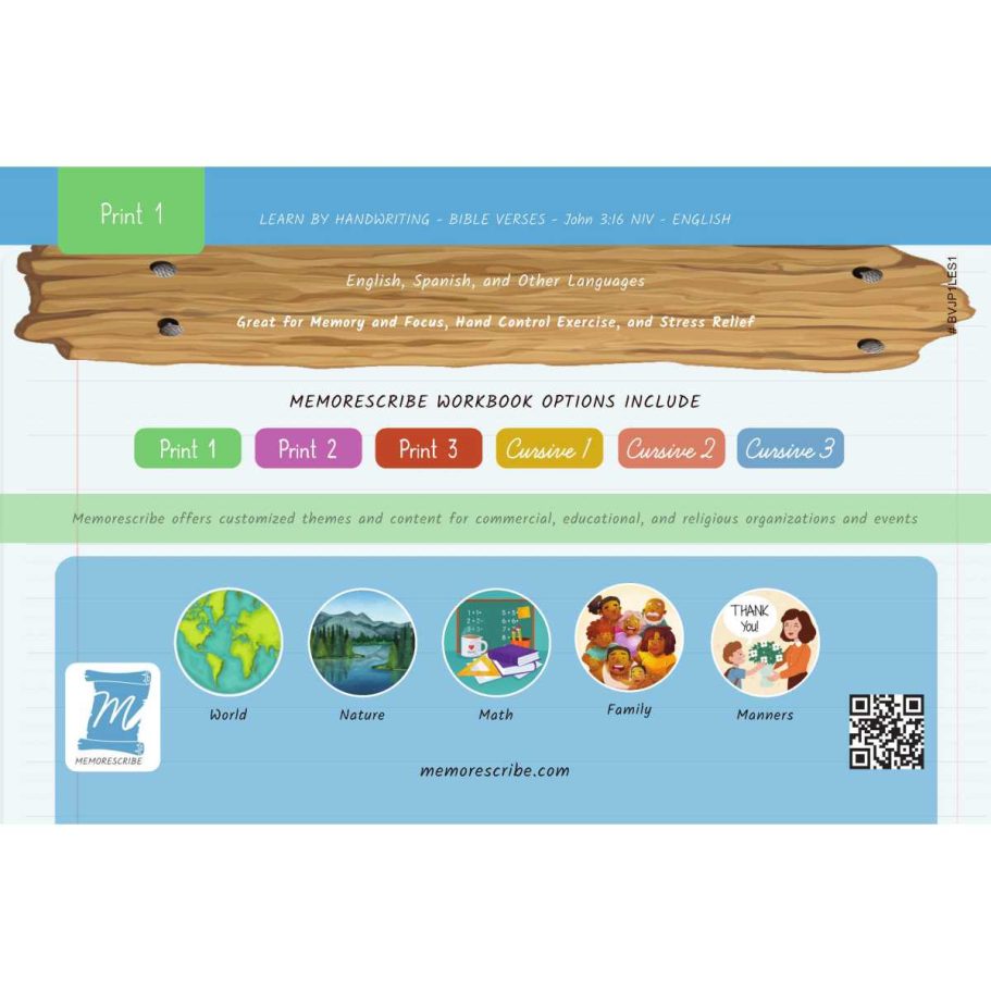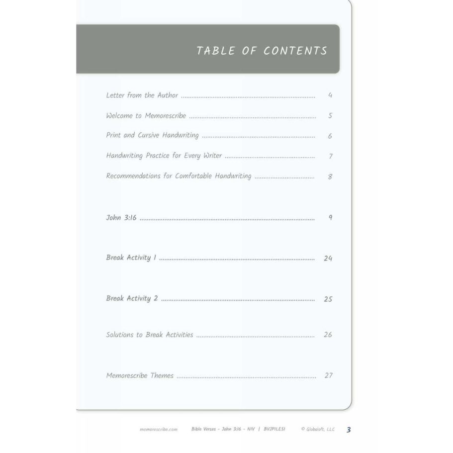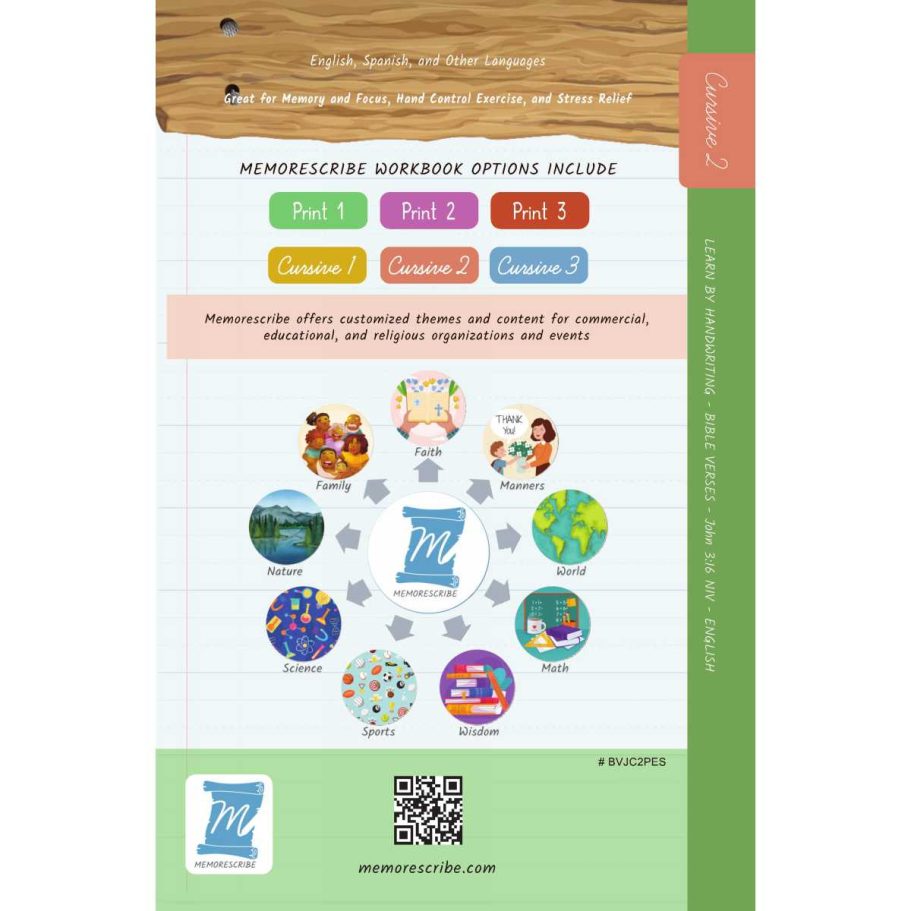 Writers will enjoy practicing and developing their personal, unique handwriting style with easy-to-follow exercises while they learn and review the Bible Verse John 3:16 (NIV).