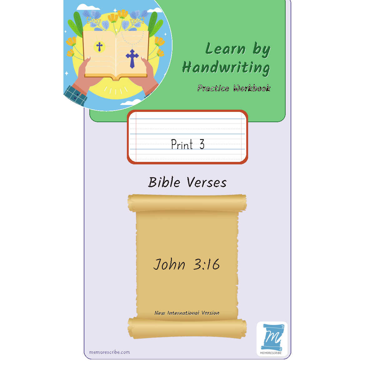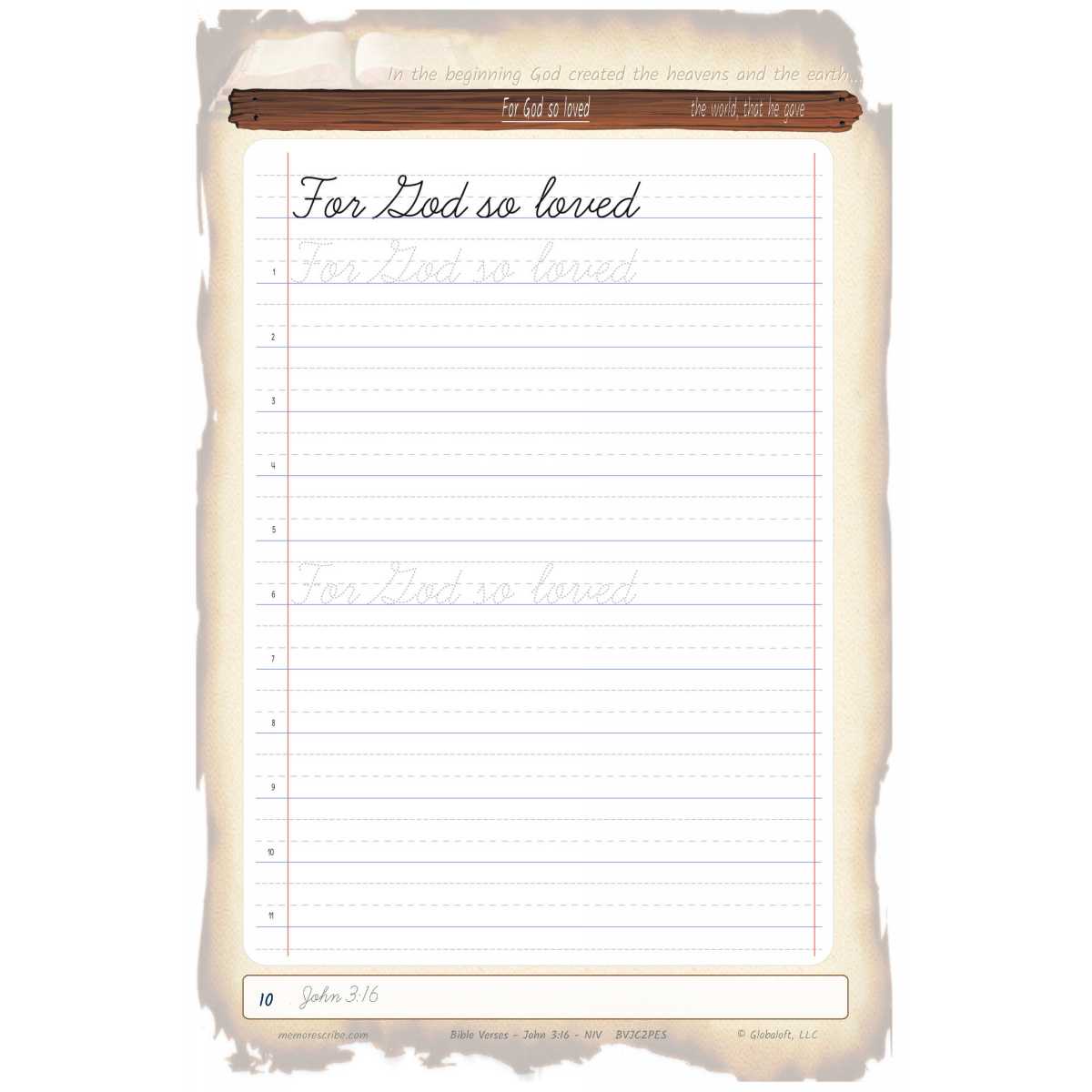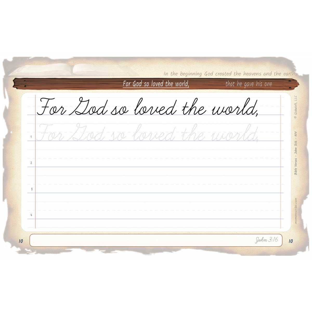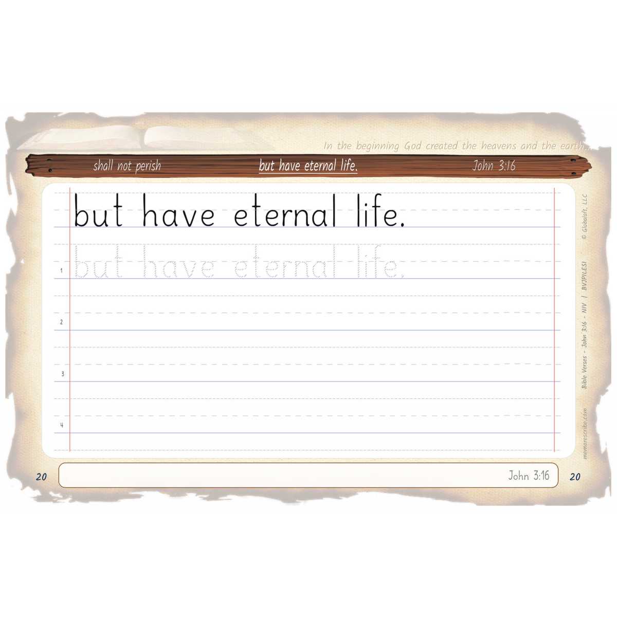 Writers will enjoy practicing and developing their personal, unique handwriting style with easy-to-follow exercises while they learn and review the Bible Verse John 3:16 (NIV).