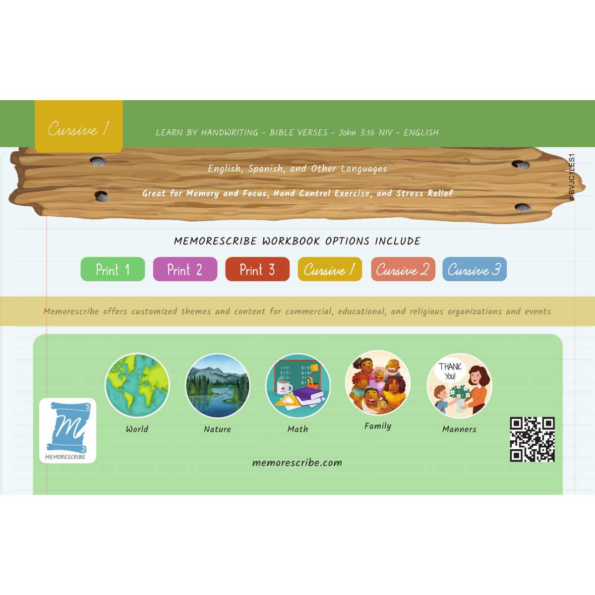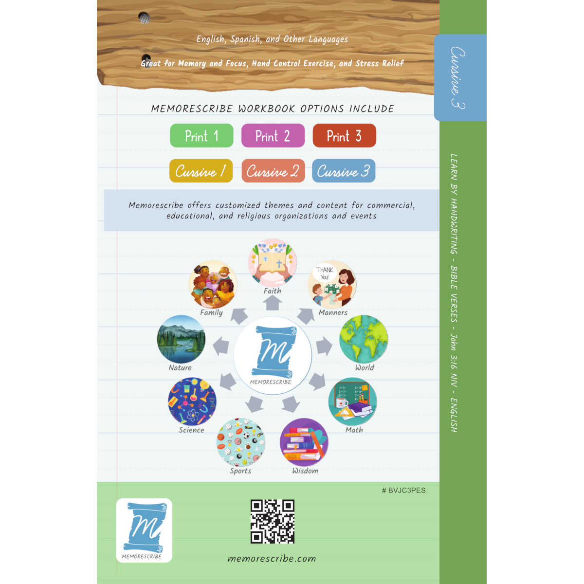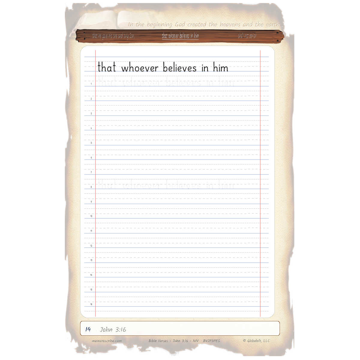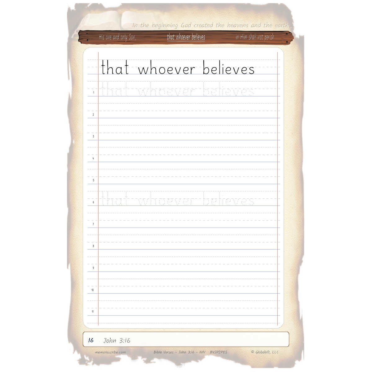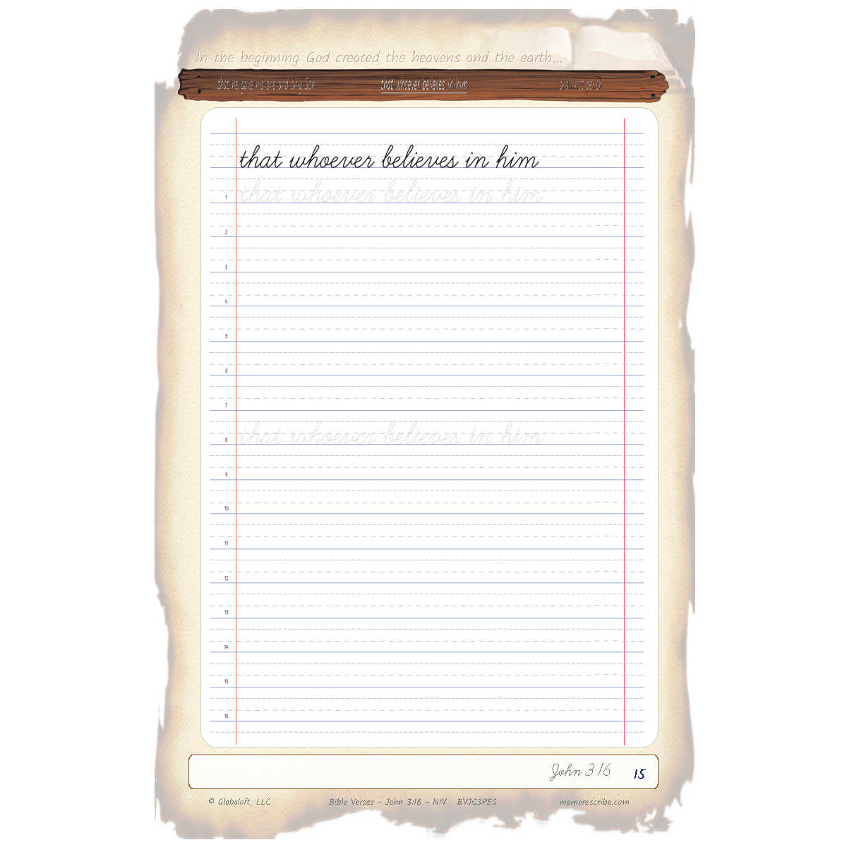 Writers will enjoy practicing and developing their personal, unique handwriting style with easy-to-follow exercises while they learn and review the Bible Verse John 3:16 (NIV).