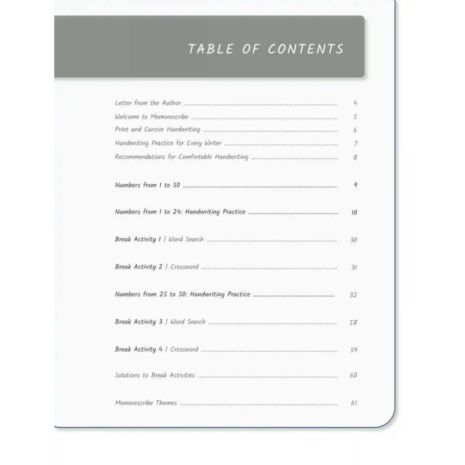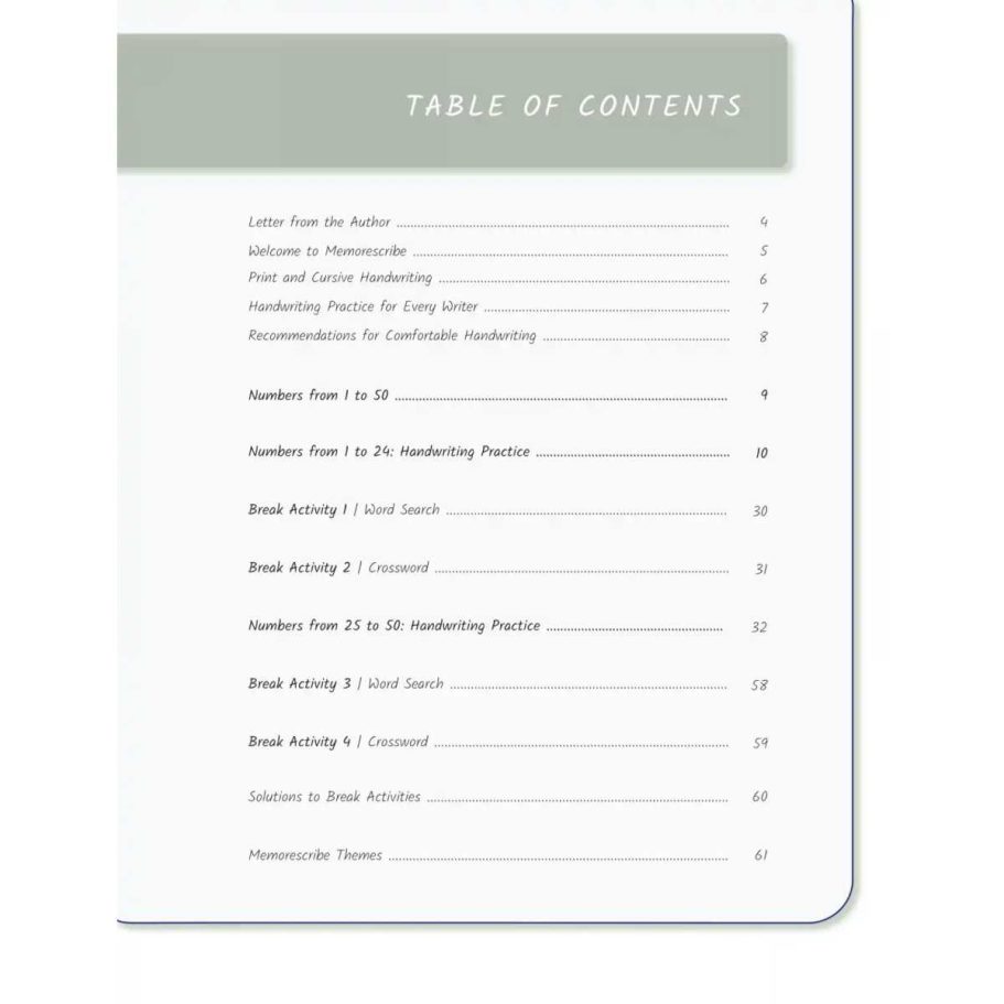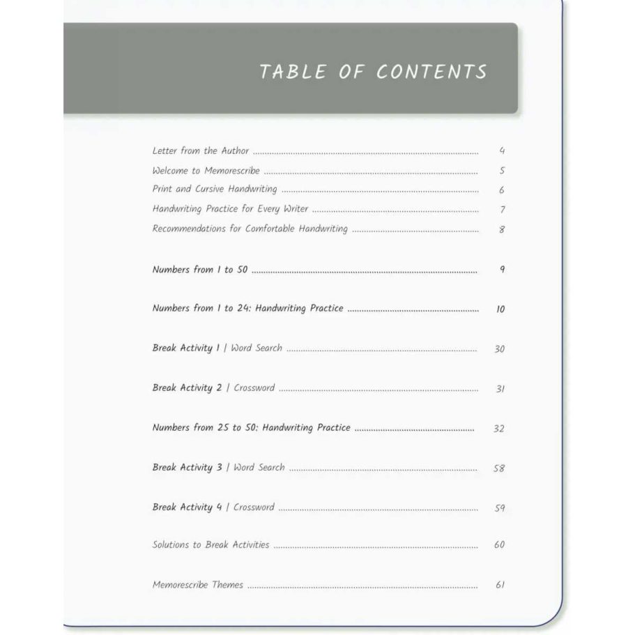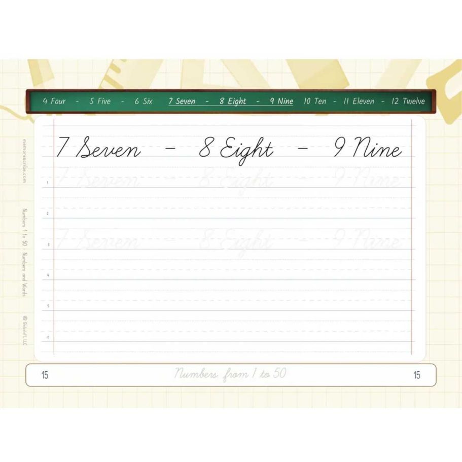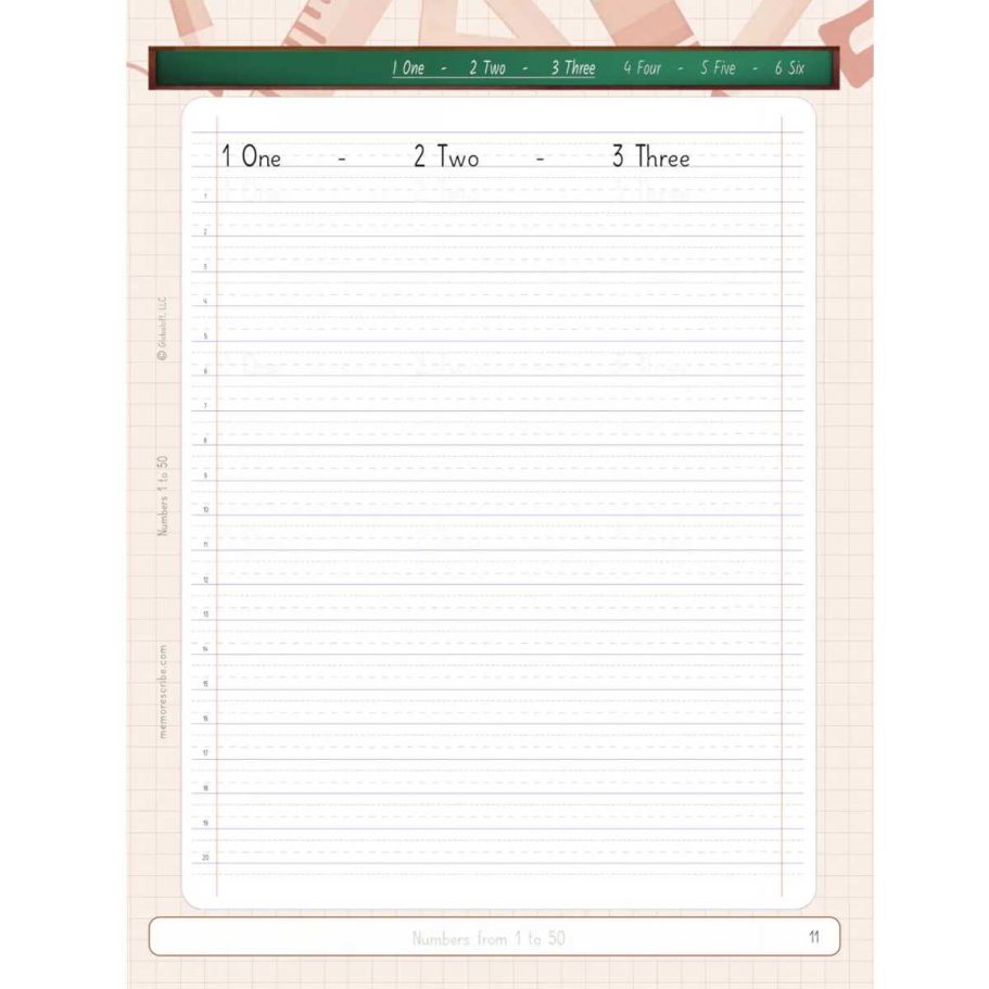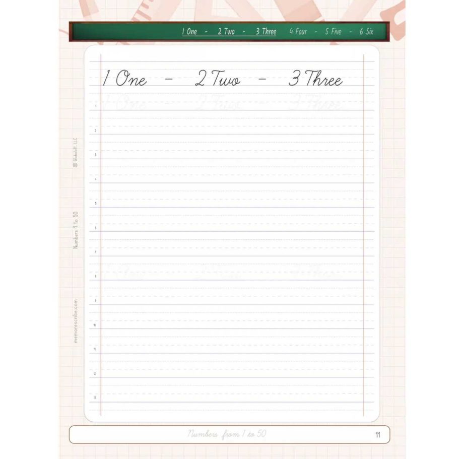 Writers will enjoy practicing and developing their personal, unique handwriting style with easy-to-follow exercises while they learn and review Numbers from 1 to 50, in words and numbers.