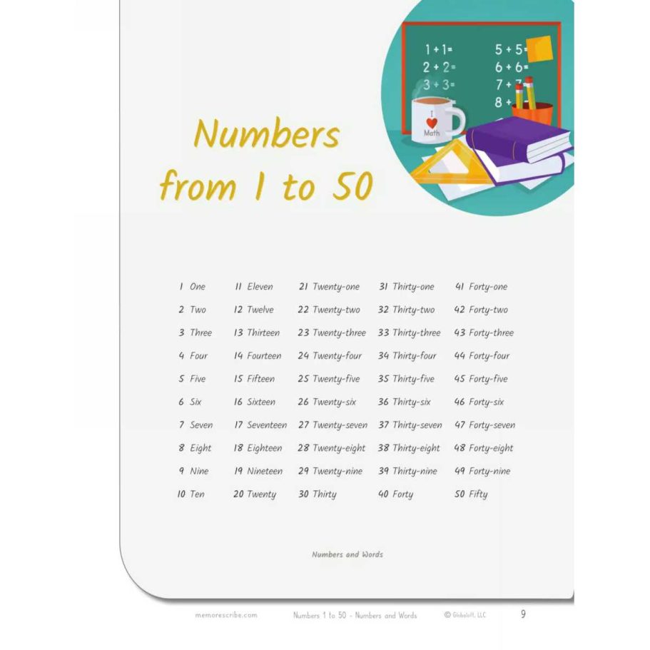 - THEME: Numbers from 1 to 50, Numbers and Words