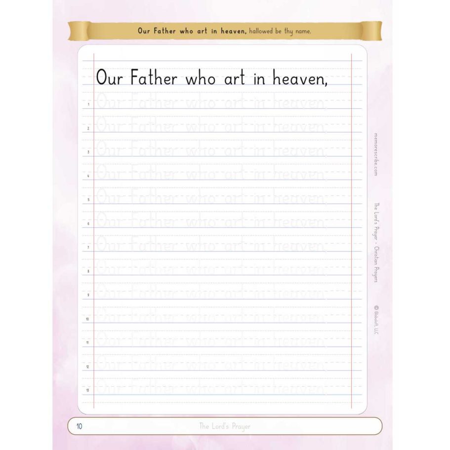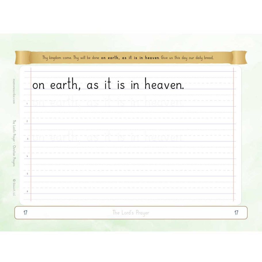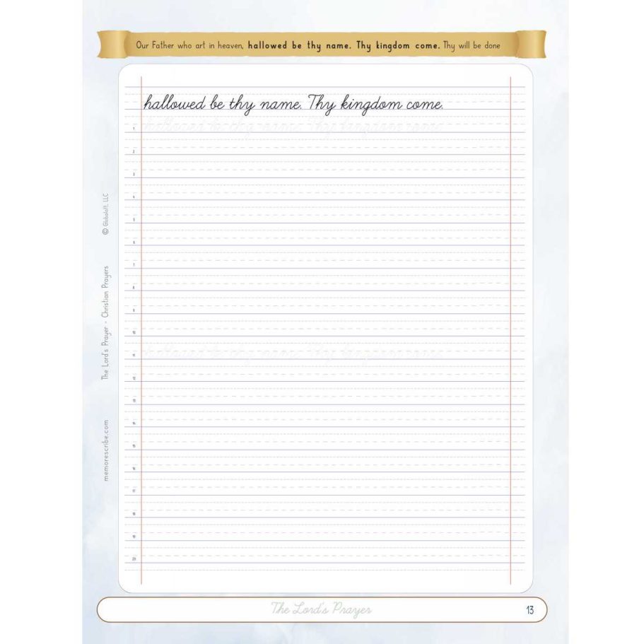 Writers will enjoy practicing and developing their personal, unique handwriting style with easy-to-follow exercises while they learn and review The Lord's Prayer, also known as Our Father.